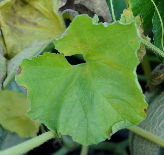 Plusieurs bioagresseurs des racines, en particulier des champignons telluriques et des nématodes, peuvent être à l'origine de jaunissements foliaires. En fait, ces jaunissements sont consécutifs au parasitisme de ces microorganismes qui s'exerce plus particulièrement au niveau des racines (Phomopsis sclerotioides,  Pyrenochaeta lycopersici, Monosporascus cannoballusMeloidogyne spp. ...),  du collet, et du système vasculaire (Fusarium oxysporum f. sp. melonis Verticillium dahliae...). Observez également si un chancre sur tige ne pourrait pas être à l'origine du jaunissement de quelques feuilles sur un rameau.