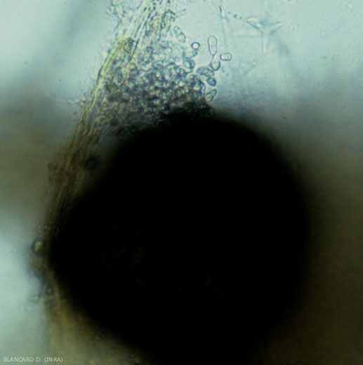 Ce champignon est avant tout un parasite des parties aériennes des Cucurbitacées. On le rencontre parfois sur les parties souterraines et proches du sol. Il affecte généralement le collet du Melon.