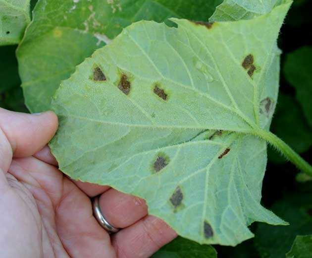 ne se développe que sur le feuillage des cucurbitacées provoquant essentiellement des taches foliaires. En France, celles-ci sont observées sur concombre, melon et plus récemment sur courgette. Le mildiou est une maladie qu'il convient de diagnostiquer précocement car ses épidémies, comme celles de nombreux autres mildious sur d'autres espèces végétales, sont fulgurantes et très dommageables.