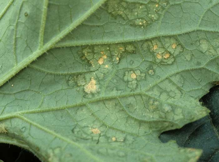 Lorsque l'hygrométrie sous le couvert végétal est très élevée, on peut voir apparaître à la face supérieure des feuilles, des taches ayant tendance à se nécroser (figure 1). A la face inférieure, on peut noter que ces taches correspondent à des îlots de cellules ayant éclaté à la suite d' hygrométries trop élevées (figure 2). On observe surtout ces dégâts dans les cultures sous tunnel plastique, sous chenille et agro-textils qui ont tendance à maintenir une forte humidité autour des plantes.