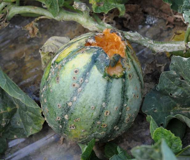 Il est rapporté sur Cucurbitacées dans plusieurs zones de production dans le monde, responsable de pourriture sur fruits se produisant en pré et post-récolte durant le stockage. Le melon est particulièrement touché, mais aussi le concombre, la courgette, les courges...