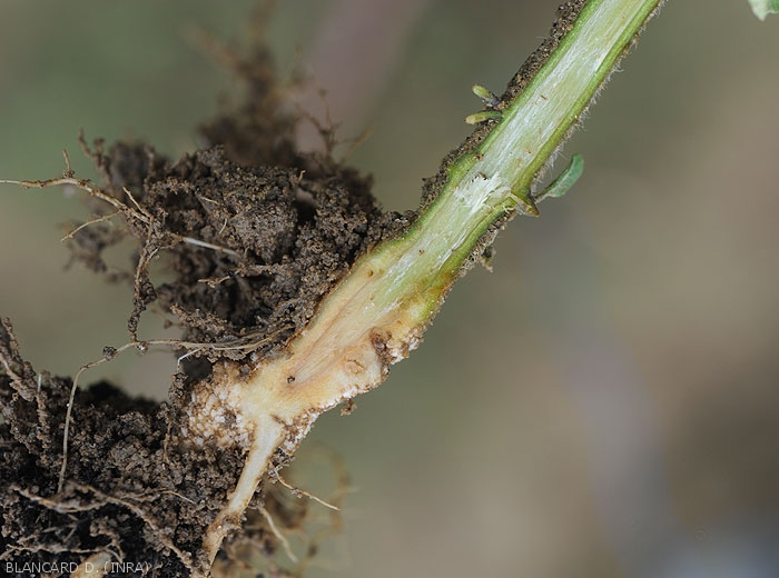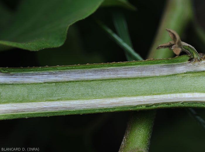 Léger brunissement des tissus vasculaires de concombre : <i>Ralstonia solanacearum</i>