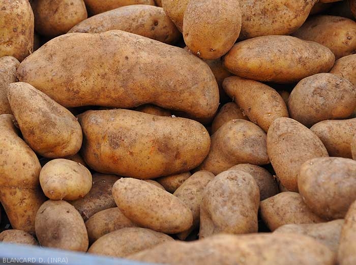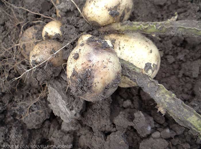 Brunissements plus ou moins larges apparaissant sur les tubercules. <i><b>Ralstonia solanacearum</i></b> (flétrissement bactérien)